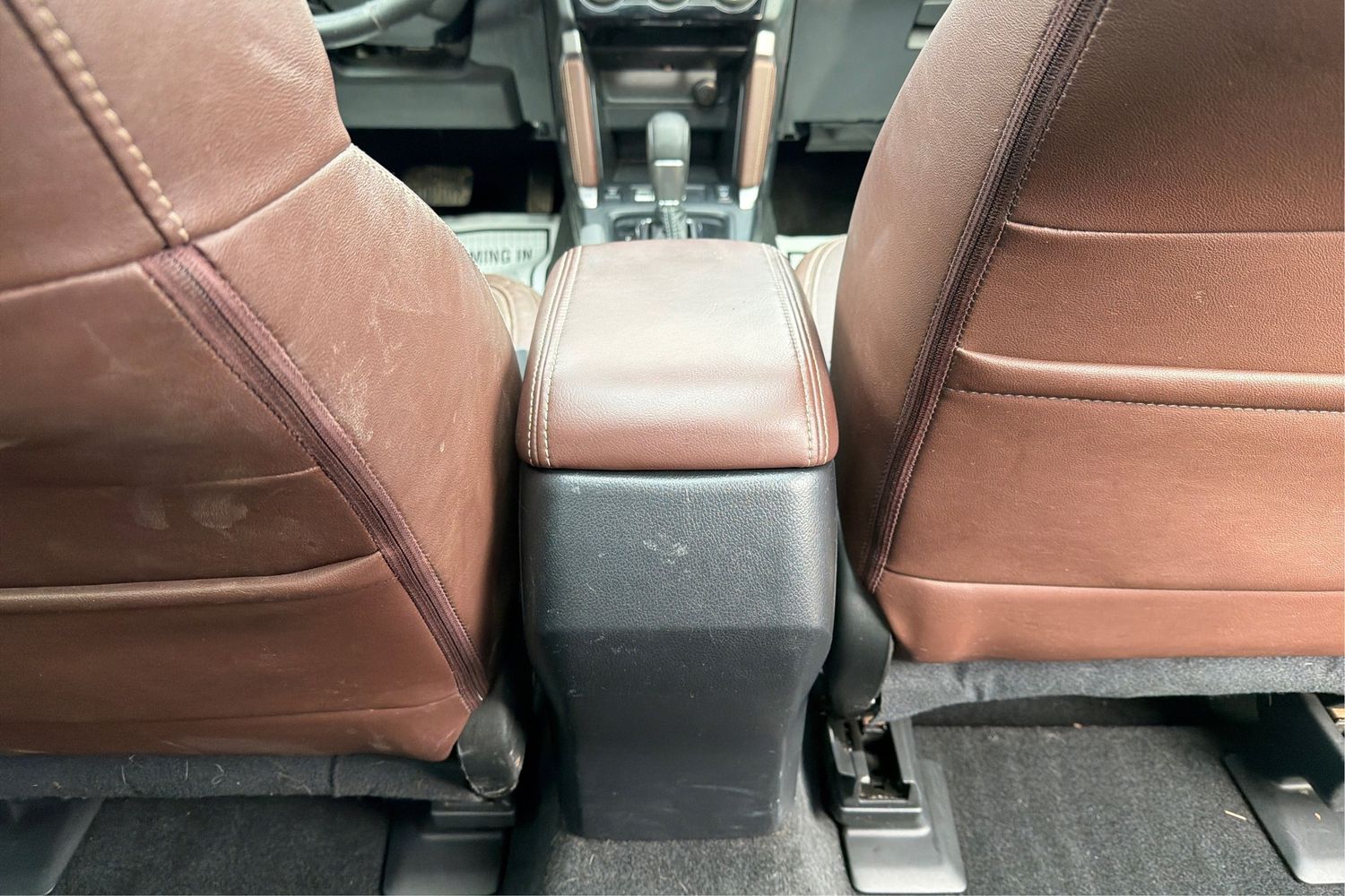 Floor console storage: Covered floor console storage